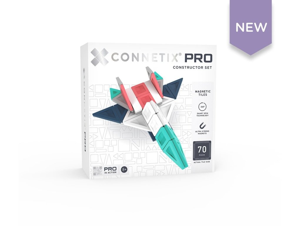Tato pokročilá řada magnetických dílků Connetix PRO je navržena pro starší děti, teenagery a všechny, kteří chtějí posunout své stavby na vyšší úroveň. Díky inovativní technologii Smart-Spin se extra silné magnety uvnitř dílků otáčejí o 360°, což umožňuje stavění v nových směrech, překrývání, posouvání i vrstvení – bez omezení pevných pozic magnetů.