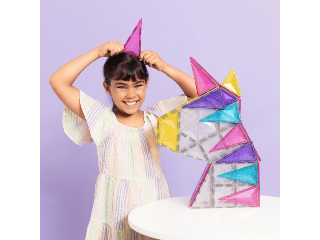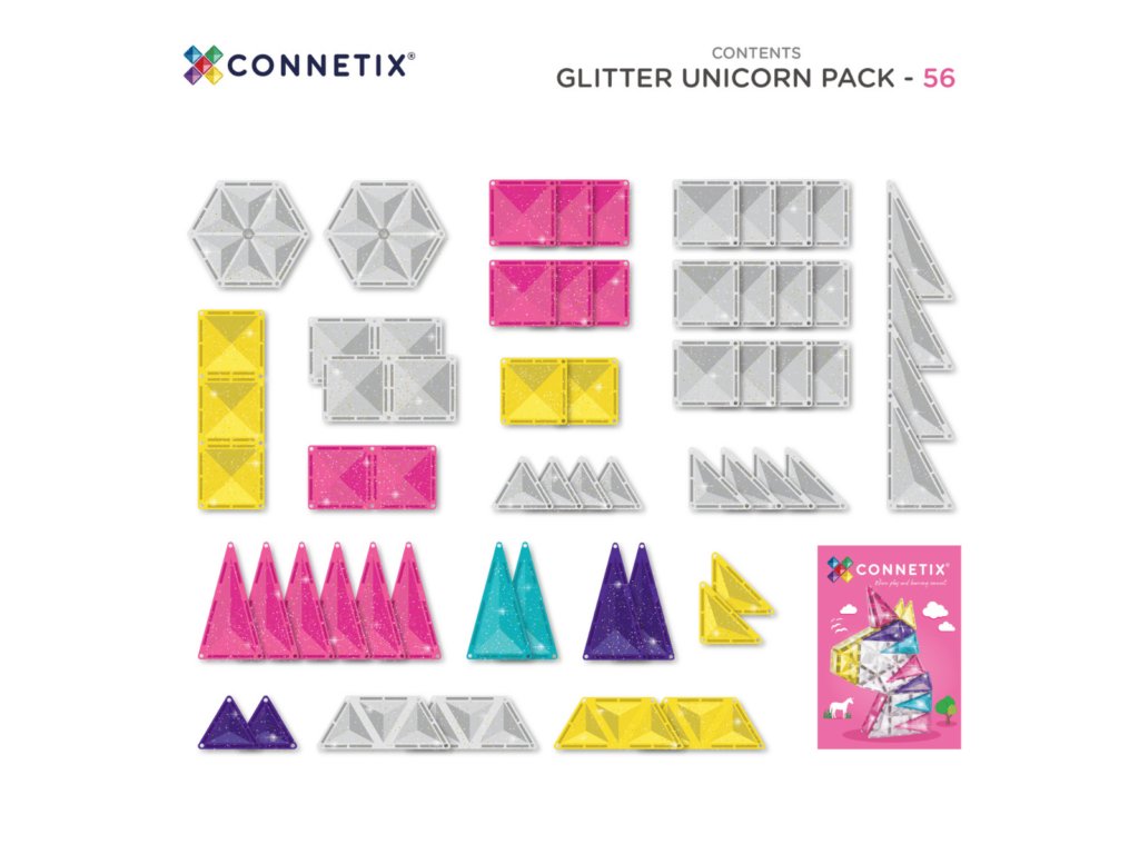 Connetix Tiles Glitter Unicorn Pack – Magnetická stavebnice s třpytkami 56 ks