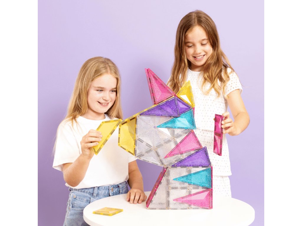 Každý dílek je posetý jemnými třpytkami a má unikátní zkosený design pro krásné světelné odlesky. Stavějte kouzelné hrady, jednorožce, sněhové koule nebo si ozdobte oslavu – tato sada inspiruje děti k vyprávění příběhů a rozvíjení dovedností STEAM hravou a tvořivou formou.