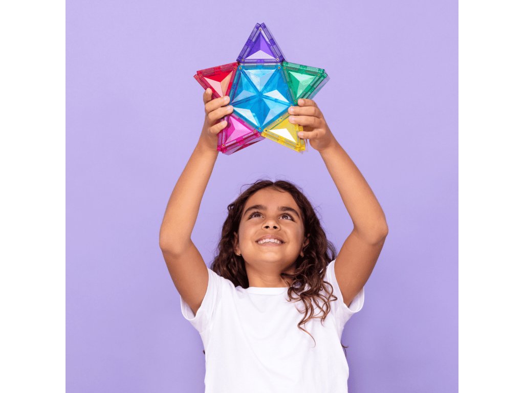 Rozzařte svět dětské fantazie! Sada Light Star Pack přináší zcela nový rozměr stavění – barvy, světlo a hra se stávají skutečným zážitkem. Obsahuje klasické čtverce, rovnostranné trojúhelníky, pětiúhelníky ve všech osmi zářivých barvách a k tomu jeden speciální dílek – dobíjecí magnetickou LED dlaždici, která rozsvítí každou stavbu.
