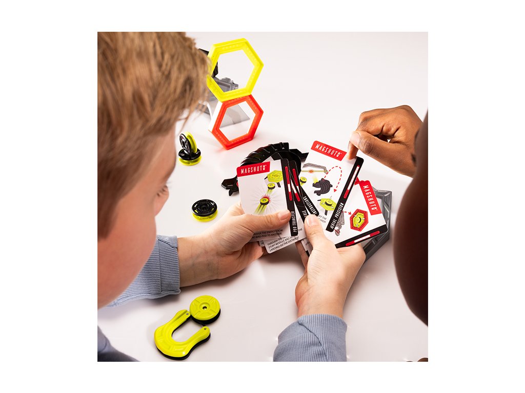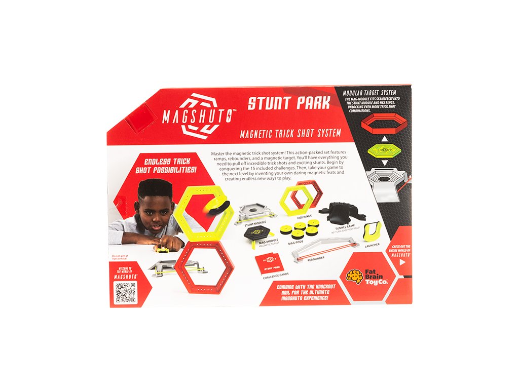 MagShuto (Challenge Track) od Fat Brain Toys vtáhne děti i teenagery do světa magnetických triků a dovednostních výzev. Sada kombinuje vystřelovač, magnetické disky Mag-Pod a různé modulární prvky, ze kterých si hráči sami staví svůj tor plný kaskadérských kousků.