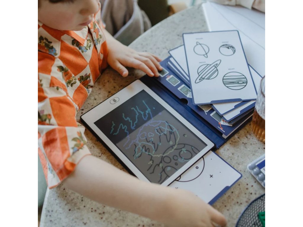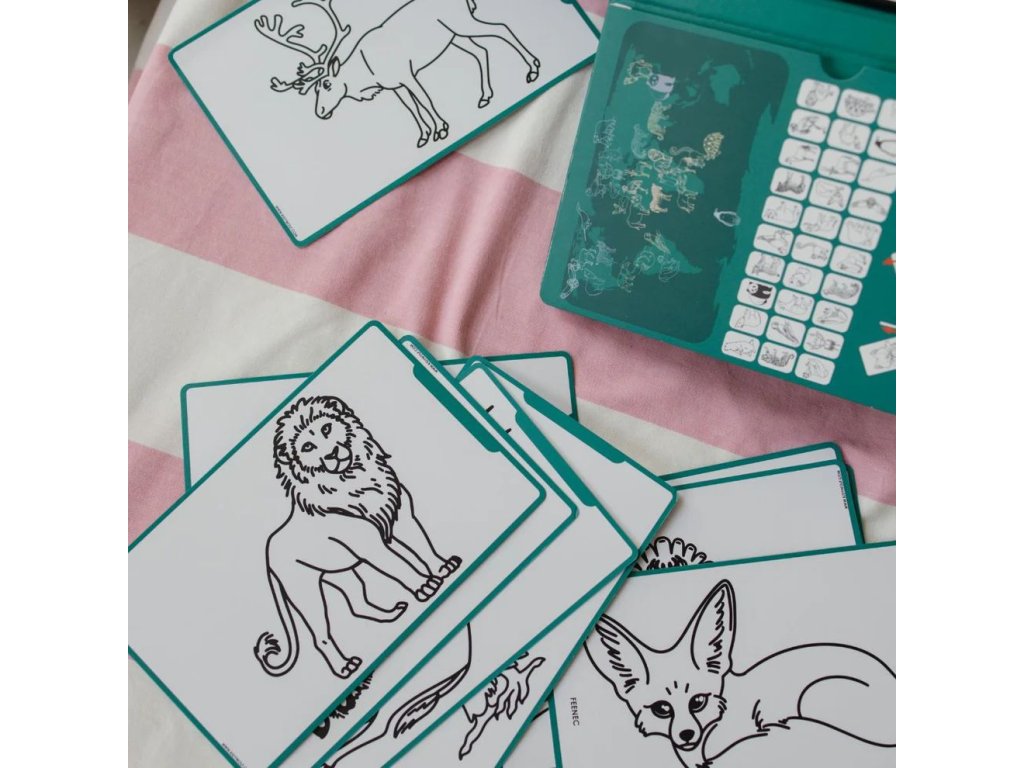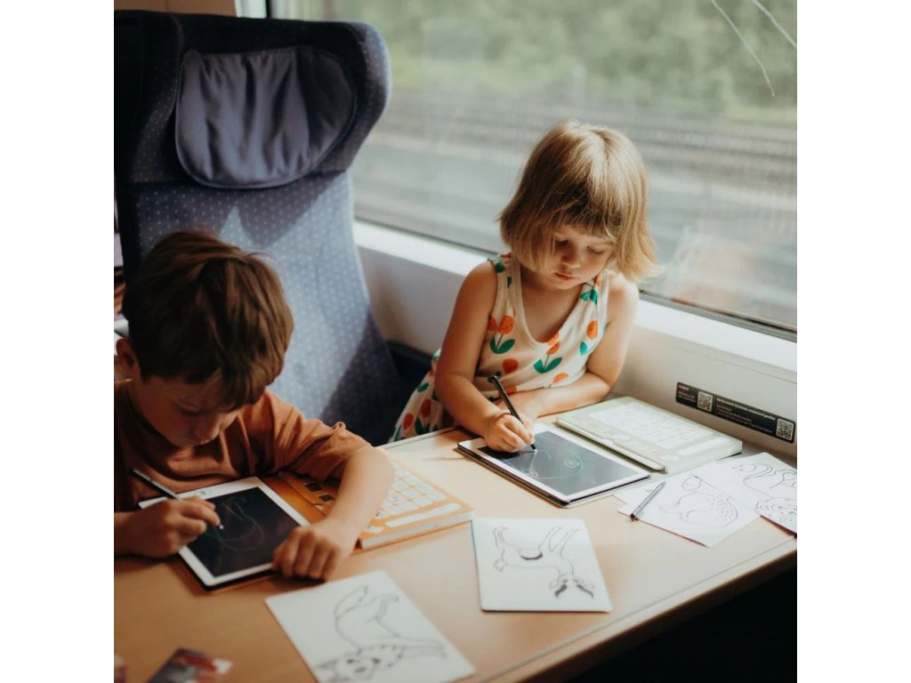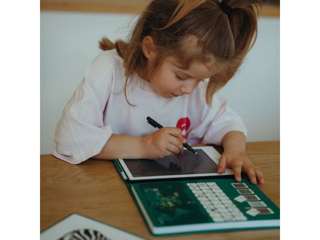 Součástí tabletu je 30 přenositelných ilustrací se zvířaty z různých koutů planety, které mohou děti obkreslovat nebo použít jako inspiraci pro vlastní obrázky. Tablet je lehký, kompaktní a snadno se vejde do batůžku – ideální společník na cesty, do školy i na doma. Praktické funkce, jako je tlačítko pro smazání a zámek obrazovky, zajišťují pohodlné používání při každém tvoření.