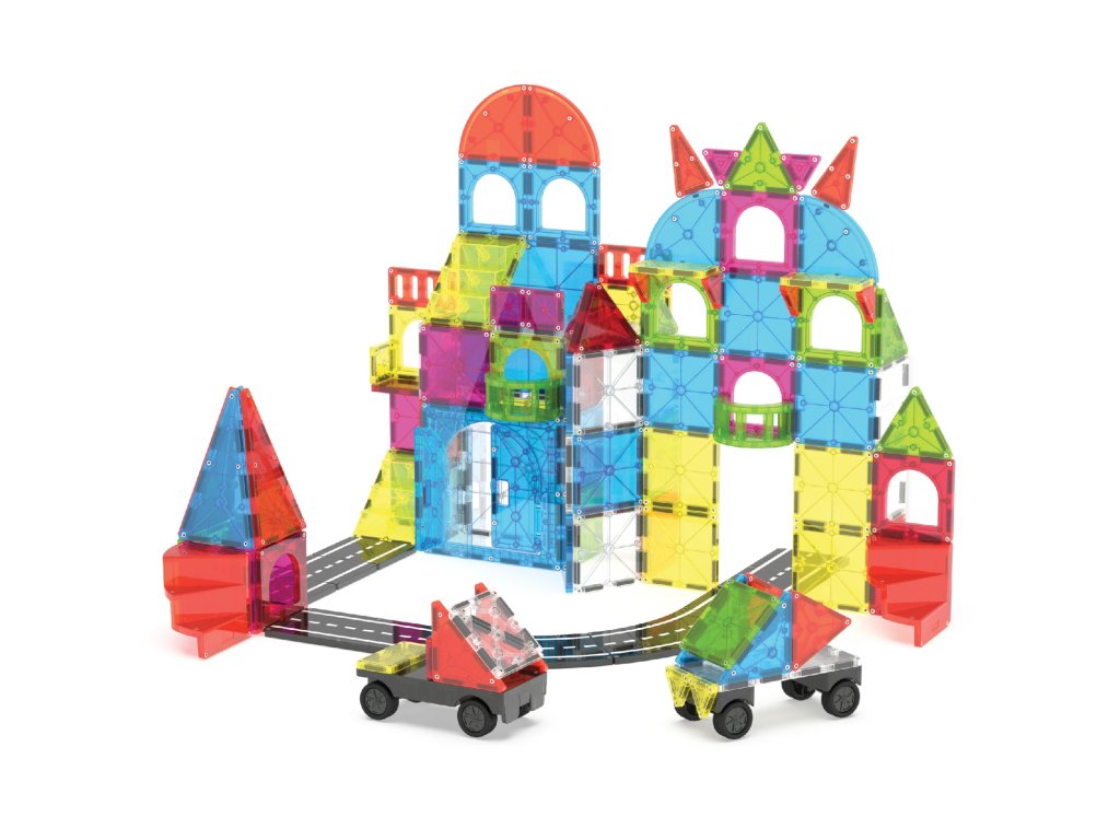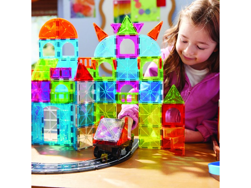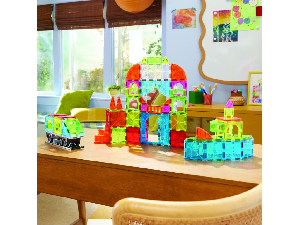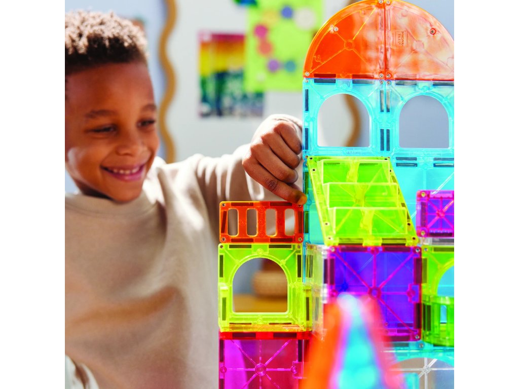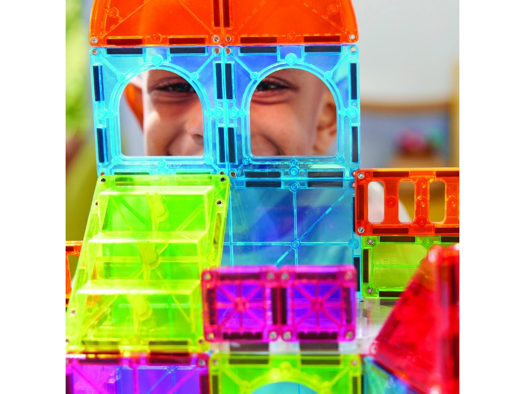 Magna-Tiles jsou originální magnetické stavebnice, které už více než 25 let inspirují děti po celém světě. Díky silným magnetům a barevným průhledným dílkům mohou děti snadno stavět trojrozměrné stavby – od jednoduchých věží až po složité konstrukce.