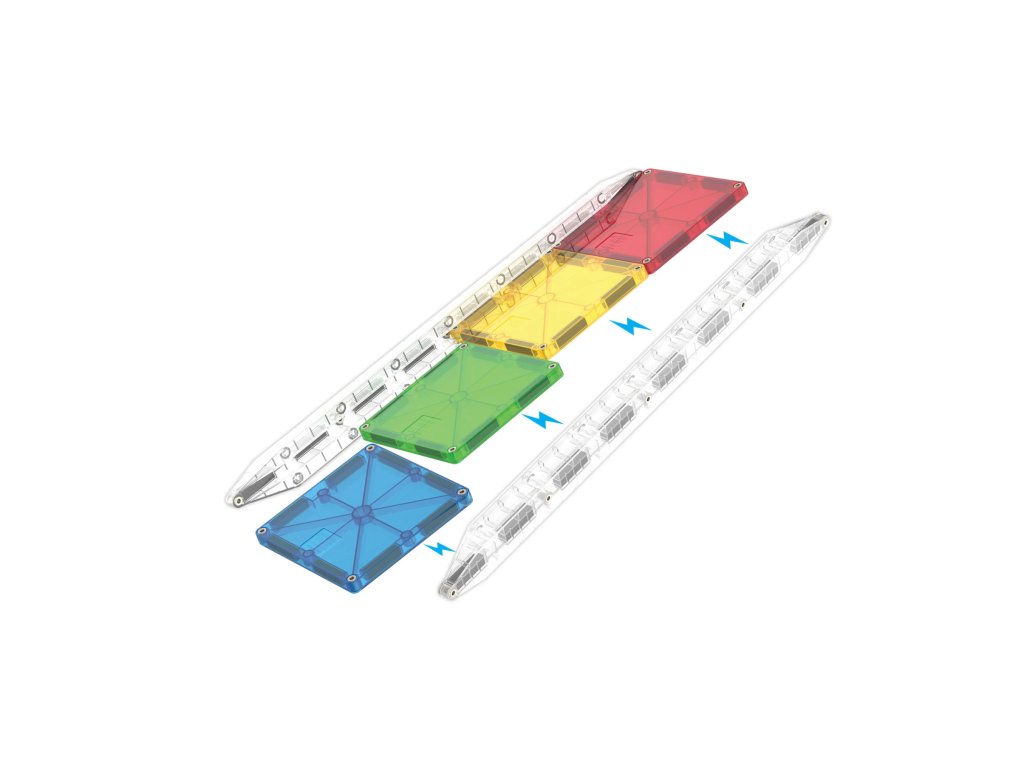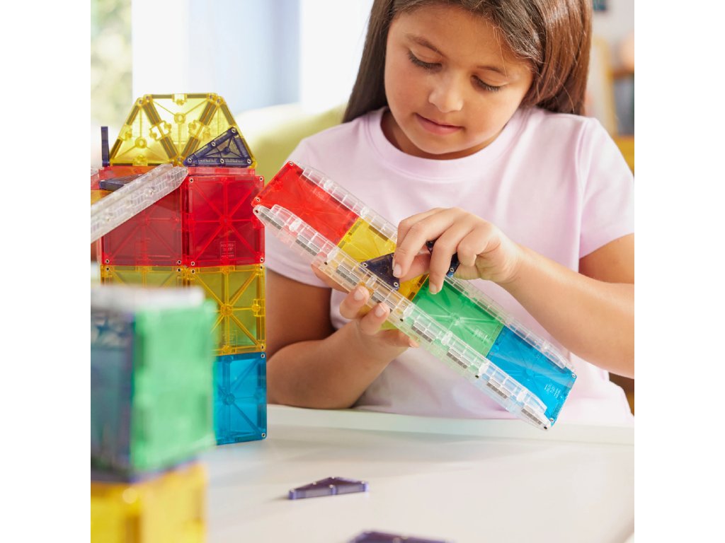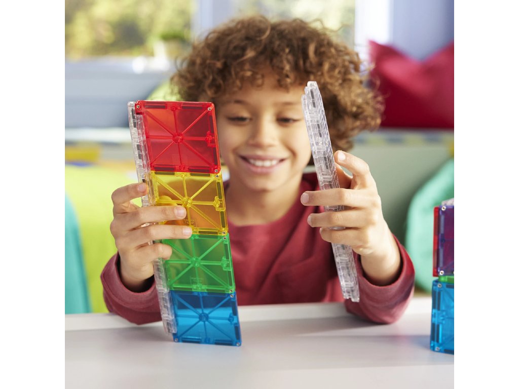 Magna-Tiles jsou originální magnetické stavebnice, které už více než 25 let inspirují děti po celém světě. Díky silným magnetům a barevným průhledným dílkům mohou děti snadno stavět trojrozměrné stavby – od jednoduchých věží až po složité konstrukce.