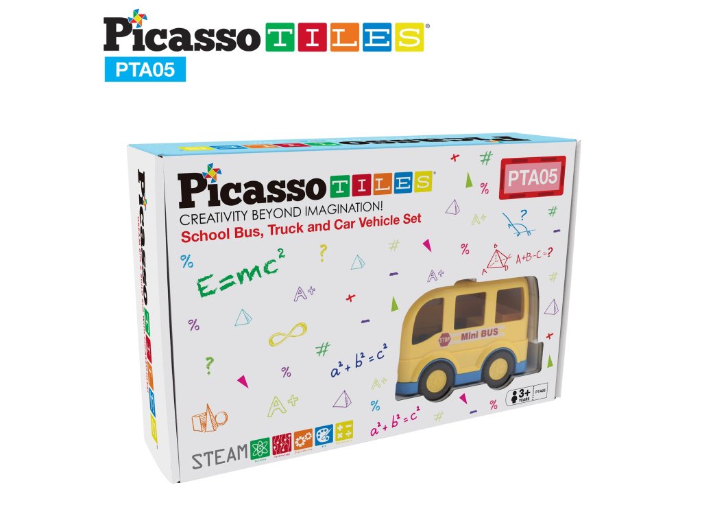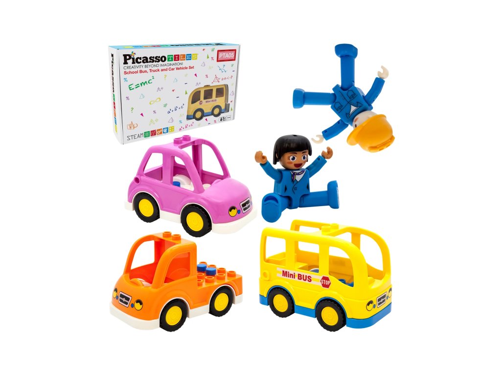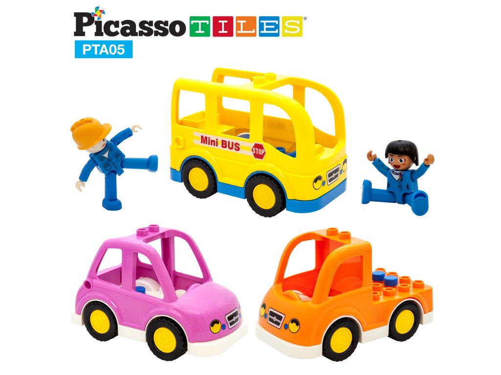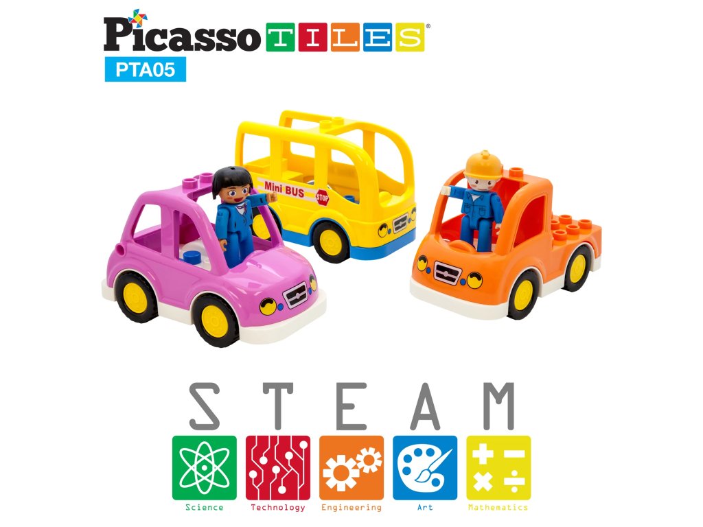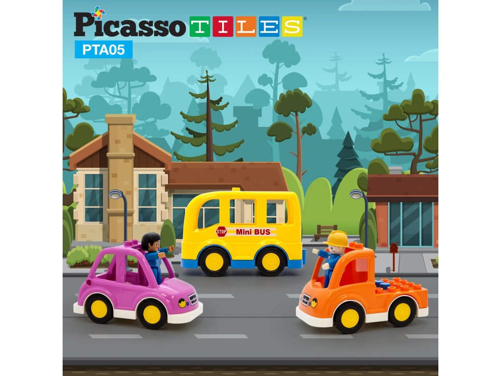 PicassoTiles – Magnetická sada postaviček s 3 auty