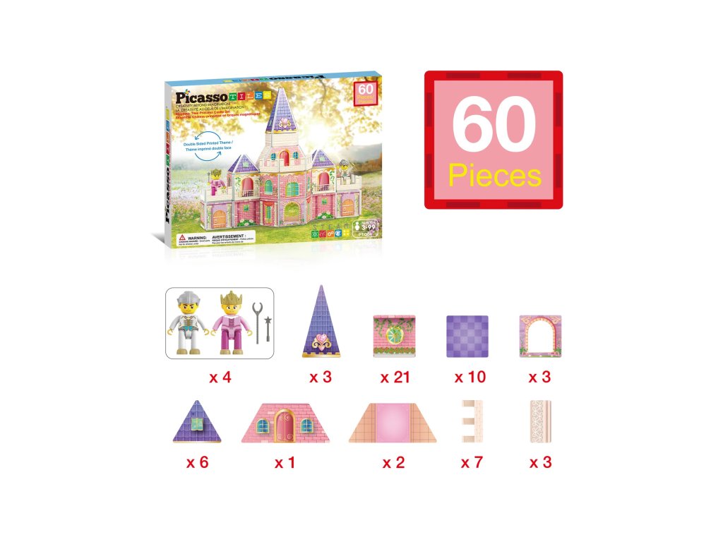PicassoTiles – Magnetická stavebnice Princeznin hrad 60 ks