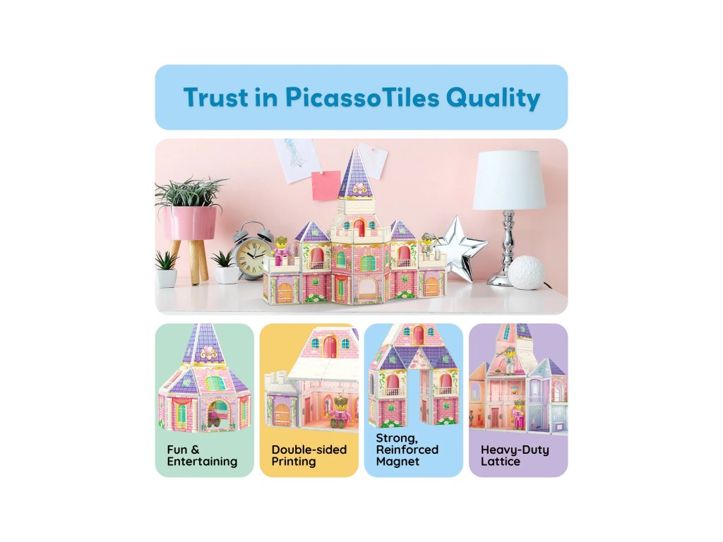 PicassoTiles jsou kreativní magnetické stavebnice, které otevírají dětem nekonečné možnosti tvoření. Barevné průhledné dílky se spojují pomocí silných magnetů a umožňují stavět od jednoduchých věží až po složité 3D konstrukce.