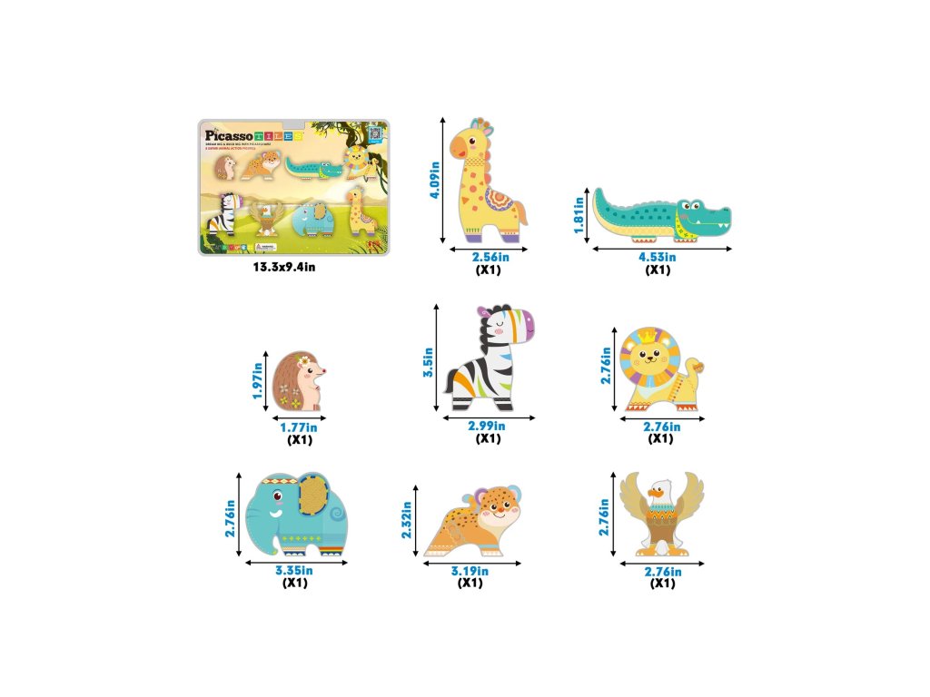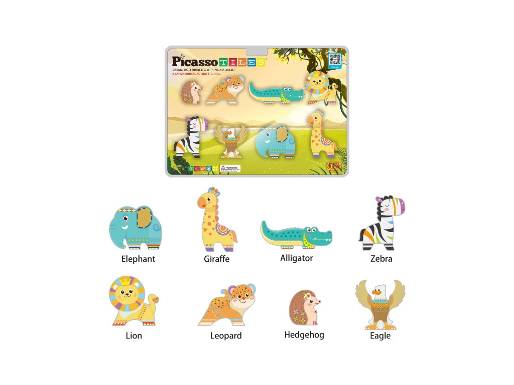 PicassoTiles Magnetická Stavebnice Safari Zvířata 8ks Akčních Figurek