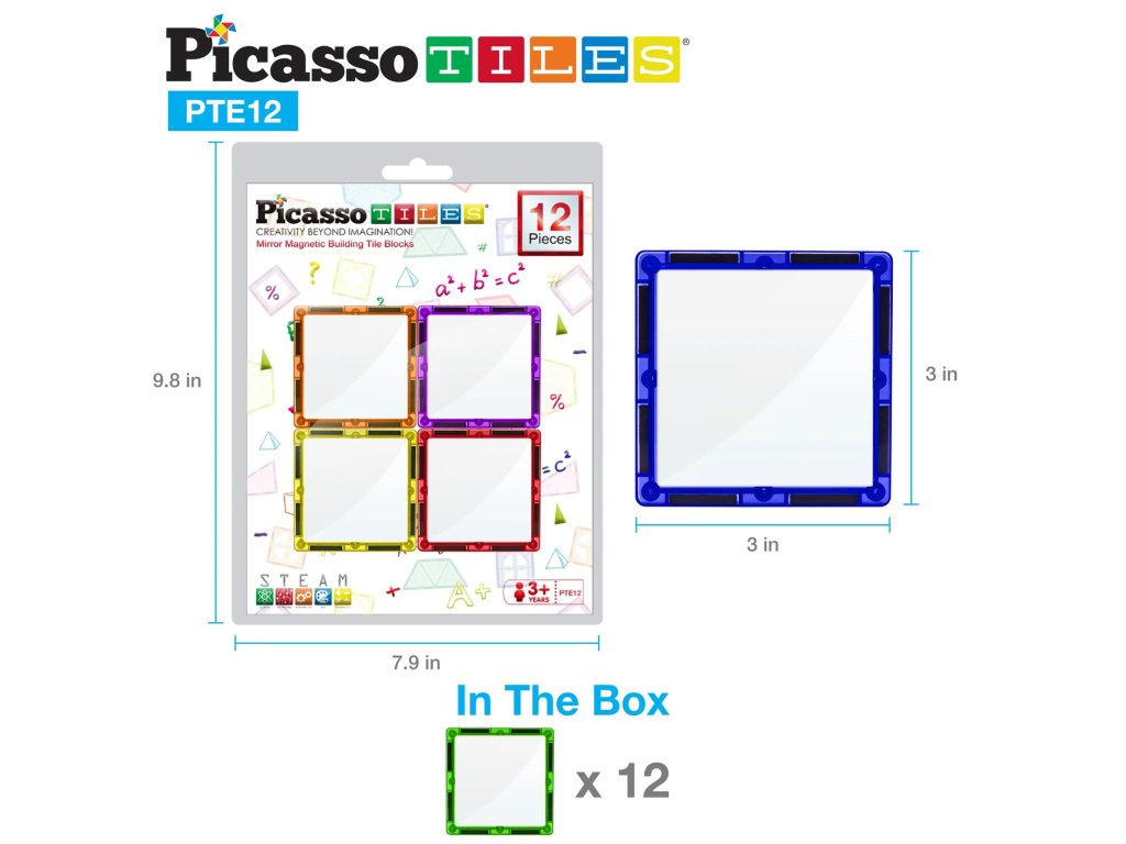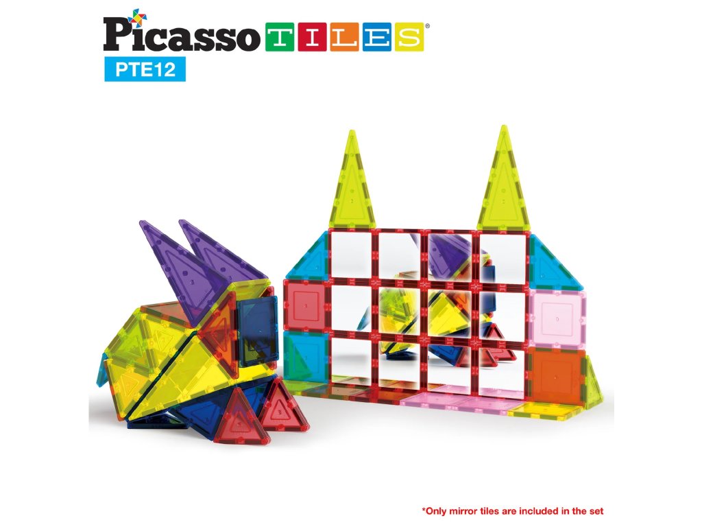 PicassoTiles Magnetická Stavebnice se Zrcadlovými Dílky 12ks