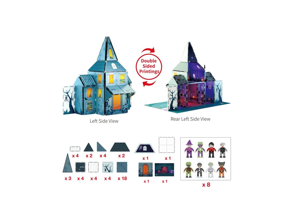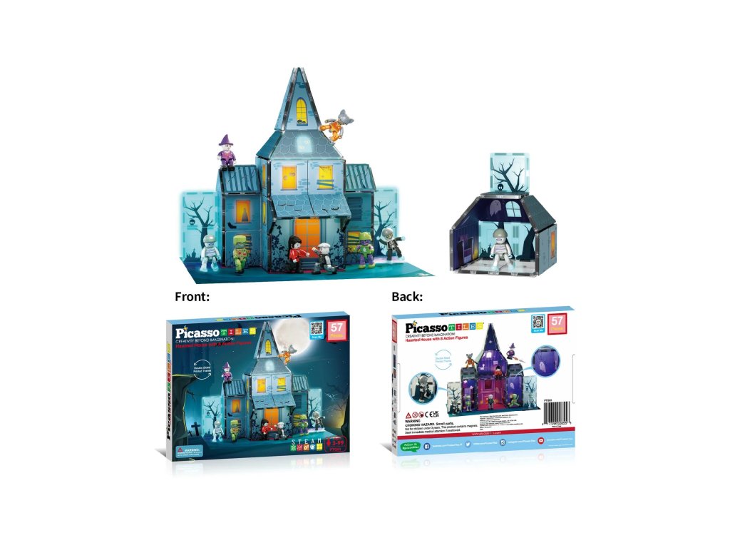PicassoTiles Strašidelný Dům - Magnetická Stavebnice se Strašidelnými Postavami 57ks